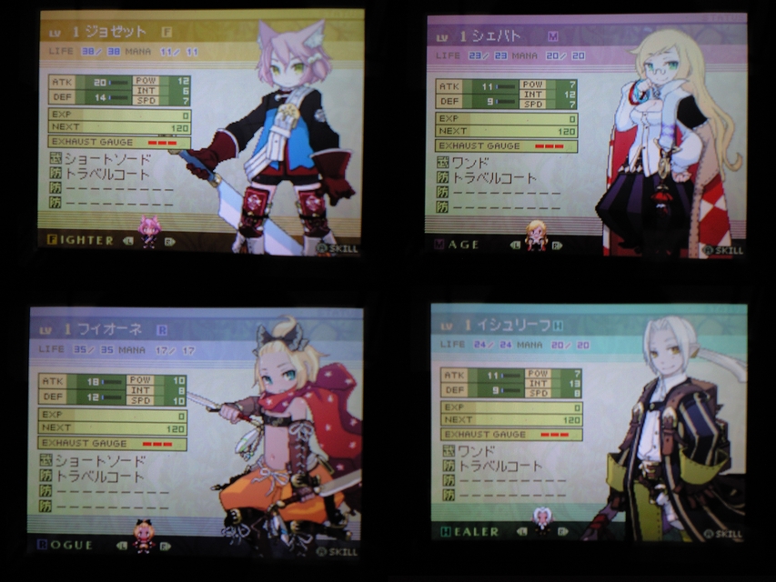 ザコ戦はファイターとメイジに複数攻撃をさせ、ヒーラーはマナクラフト。サムライは微妙にやる事ないけど通常攻撃と自己回復(戦闘中しか使えない)を。強敵相手はファイターのアタックキルで敵の攻撃力を下げ、サムライは斬馬構えで純アタッカーに。メイジはヴェイルを前衛に張って普通に魔法。ヒーラーはマナクラフトと回復を適度に。どんな相手でも対応できるパーティになりました。